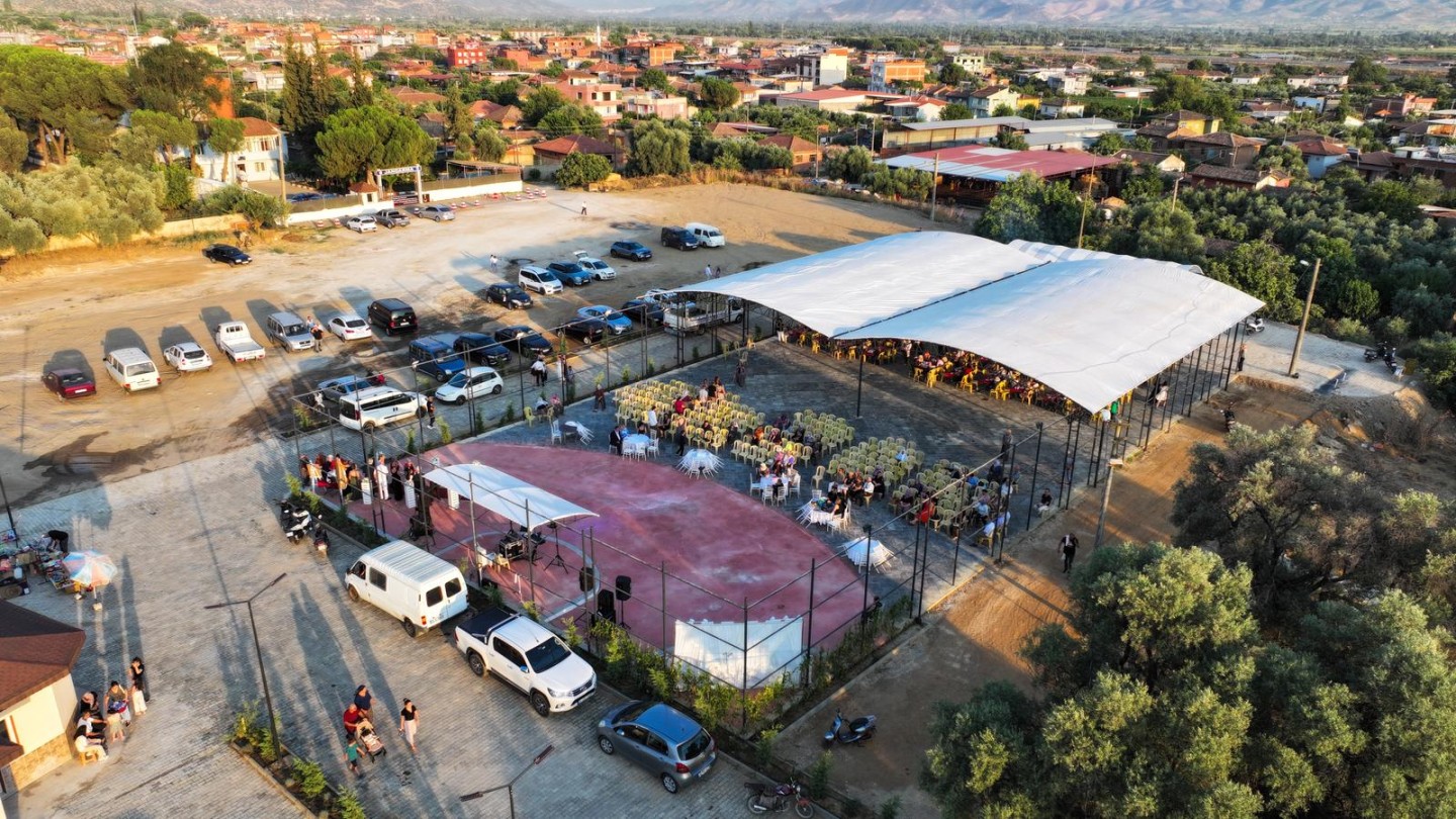 Daha önce atıl durumda kalmış olan belediyeye ait halı saha yazlık düğün salonuna dönüştürülerek Kaymakçı’ya kazandırıldı.
